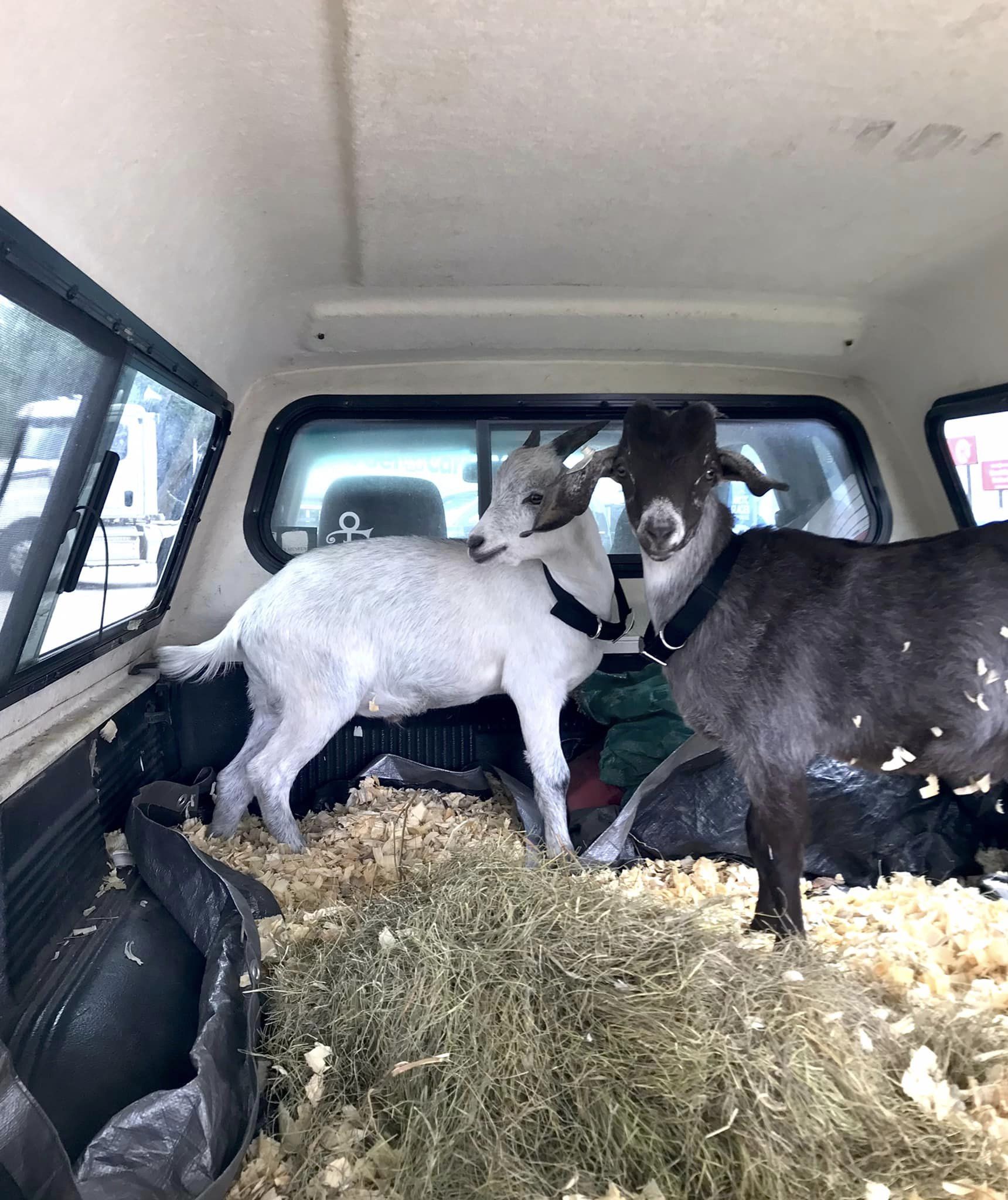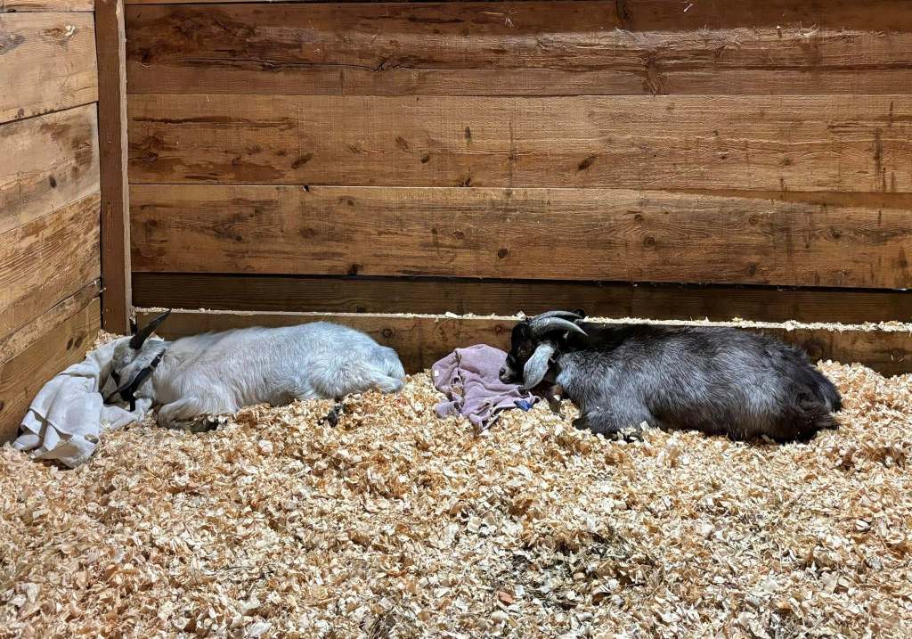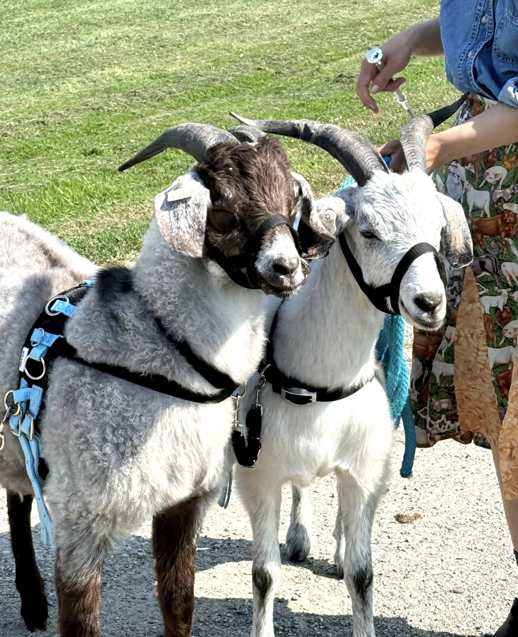 This week had some warm weather, so the boys got a spa day with their favorite UltraCruz Equine Bright White Shampoo (not sponsored, we just love they way this purple shampoo makes gray goats sparkle). This was Aston and Martin’s first bath ever! They watched David enjoying each step of the process first, before they tried it themselves.
