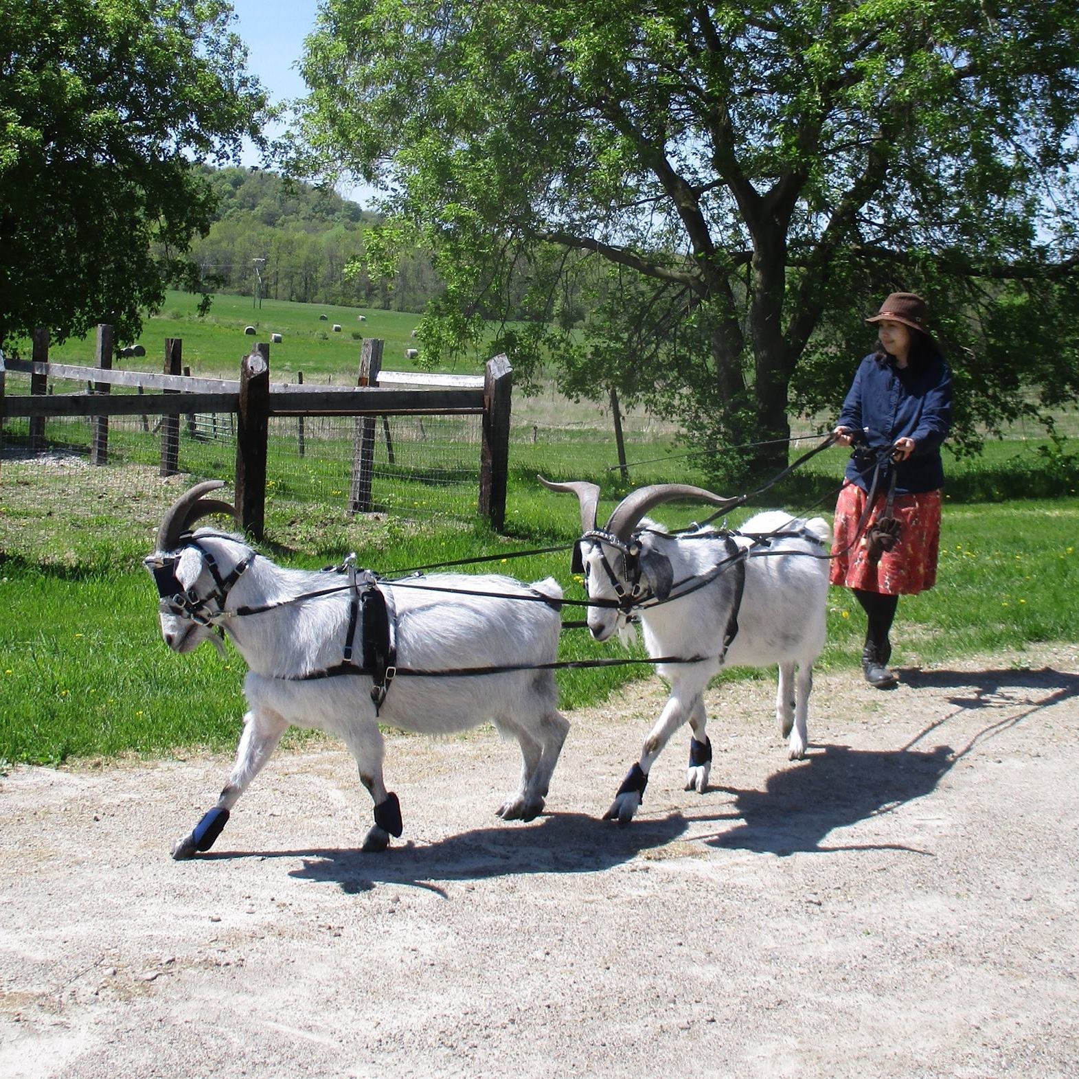 Mika Ingerman learned to drive equines when she was eight years old, and has been training animals to harness since she was a young teen. She thinks one of the most wonderful views in the world is a quiet stretch of road, framed between the horns of driving goats.